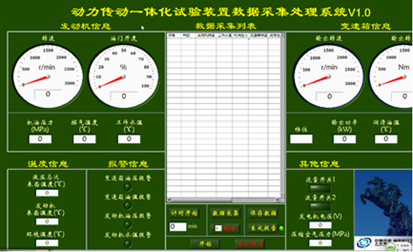 動力傳動組合試驗系統(tǒng)能夠進行冷卻系、潤滑系、液壓系統(tǒng)及各管路工作狀態(tài)檢查,動力傳動系統(tǒng)一體化空載運轉(zhuǎn)性能檢查,動力傳動監(jiān)控系統(tǒng)功能檢查,以及各部分和管路的密封檢查等,主要包含以下功能:
