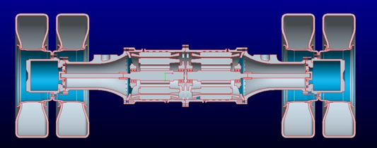電動(dòng)橋由四象限變頻輪邊電機(jī)直接驅(qū)動(dòng),無需變速箱、差速器、傳動(dòng)軸等傳統(tǒng)機(jī)械傳動(dòng)結(jié)構(gòu)。通過電力控制,驅(qū)動(dòng)橋牽引力無可調(diào),可實(shí)現(xiàn)恒牽引力或恒車速控制功能,制動(dòng)能量可以回收,每根電動(dòng)橋可輸出上限300kW牽引功率。?